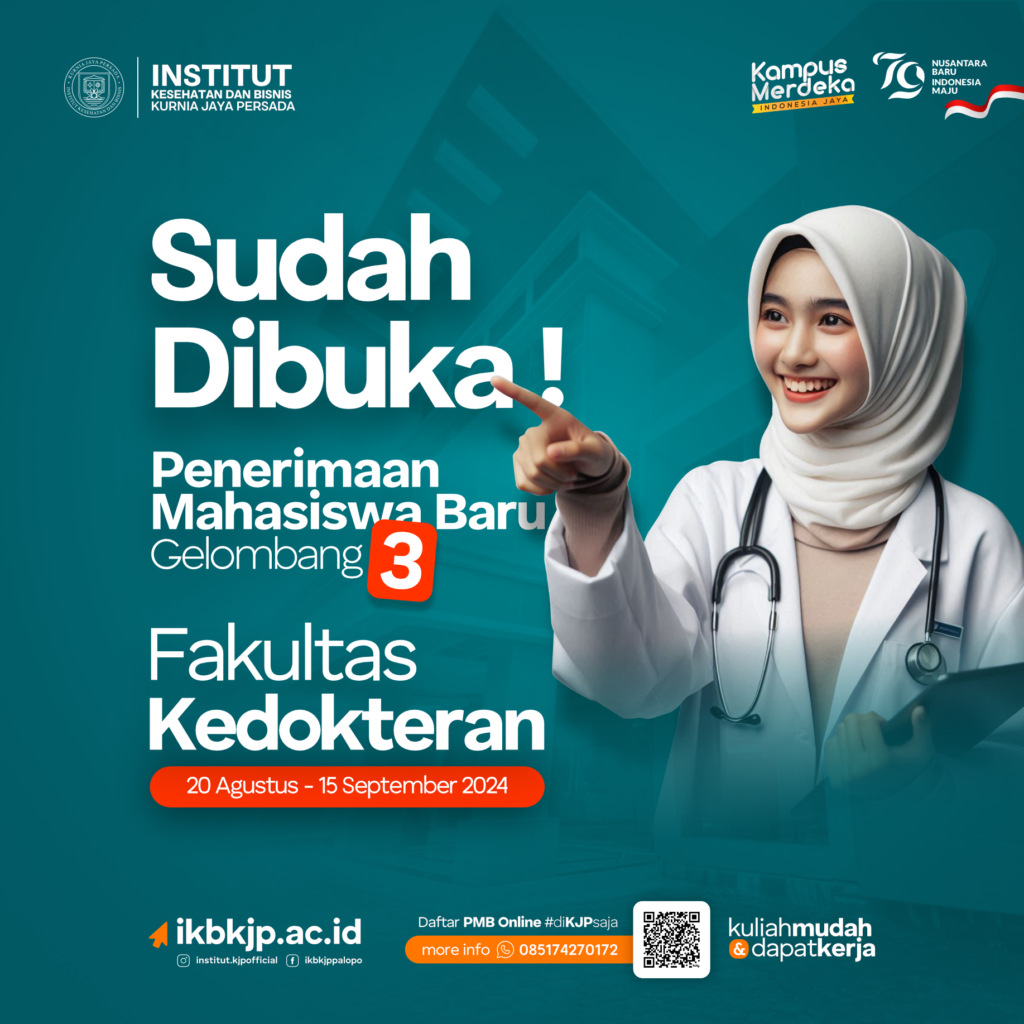 Hai adik-adik !Alhamdulillah, ada kabar baik…Penerimaan mahasiswa baru gelombang 3 di Fakultas Kedokteran Institut Kesehatan dan Bisnis Kurnia Jaya Persada, sudah dibuka yah !Ingat catat tanggalnya, dari 20 Agustus – 15 September 2024.Yuk daftar, selagi kuota masih ada !______________________________