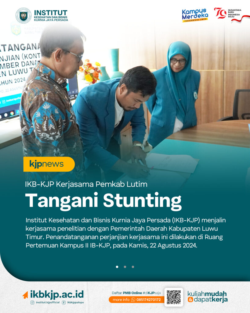 KJPNews – Institut Kesehatan dan Bisnis Kurnia Jaya Persada (IKB-KJP) menjalin kerjasama penelitian dengan Pemerintah Daerah Kabupaten Luwu Timur.