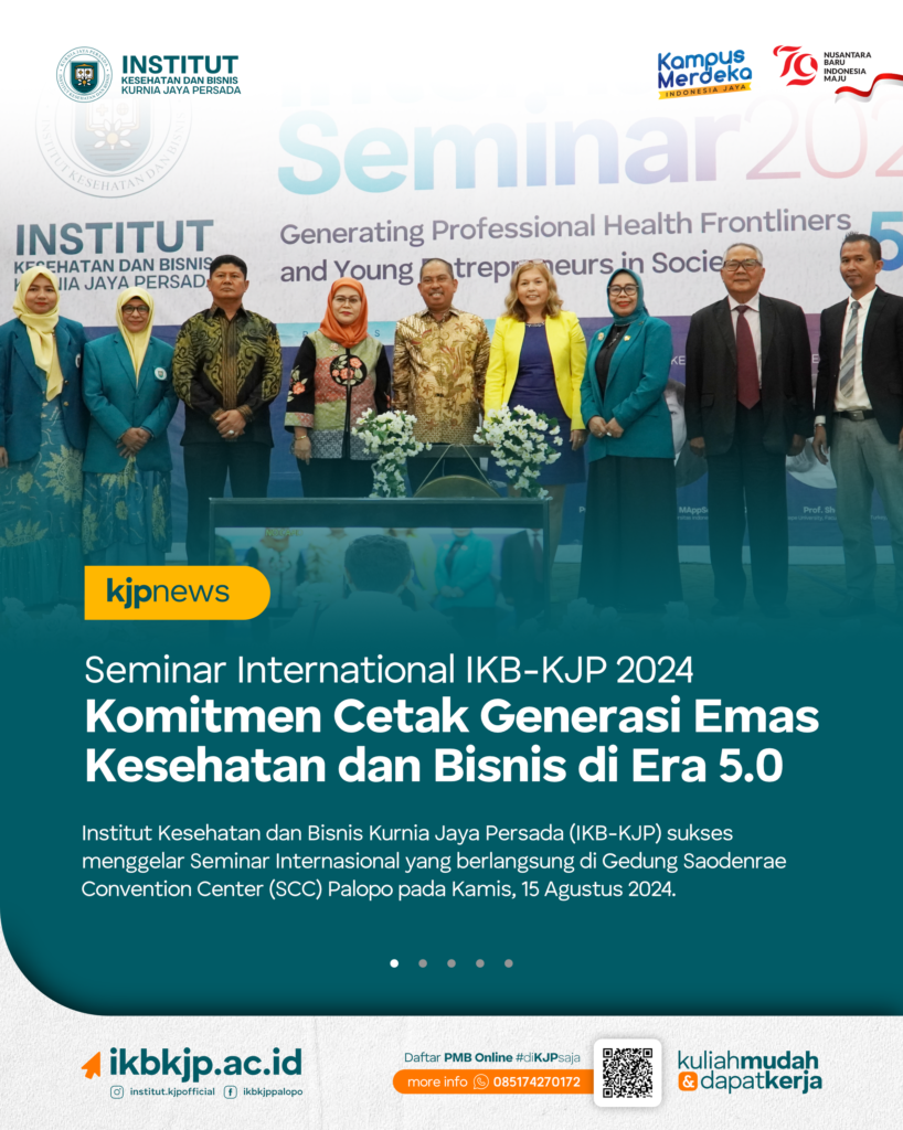 KJPNews – Institut Kesehatan dan Bisnis Kurnia Jaya Persada (IKB-KJP) sukses menggelar Seminar Internasional yang berlangsung di Gedung Saodenrae Convention Center (SCC) Palopo pada Kamis, 15 Agustus 2024.