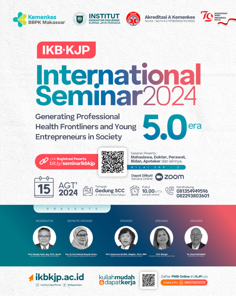 Nah, untuk mengetahui pembahasan terkait frontliner ini, Institut Kesehatan dan Bisnis Kurnia Jaya Persada (IKB-KJP) mengadakan Seminar Internasional bertajuk “Generating Professional Health Frontliners and Young Entrepreneurs in Society 5.0”.
